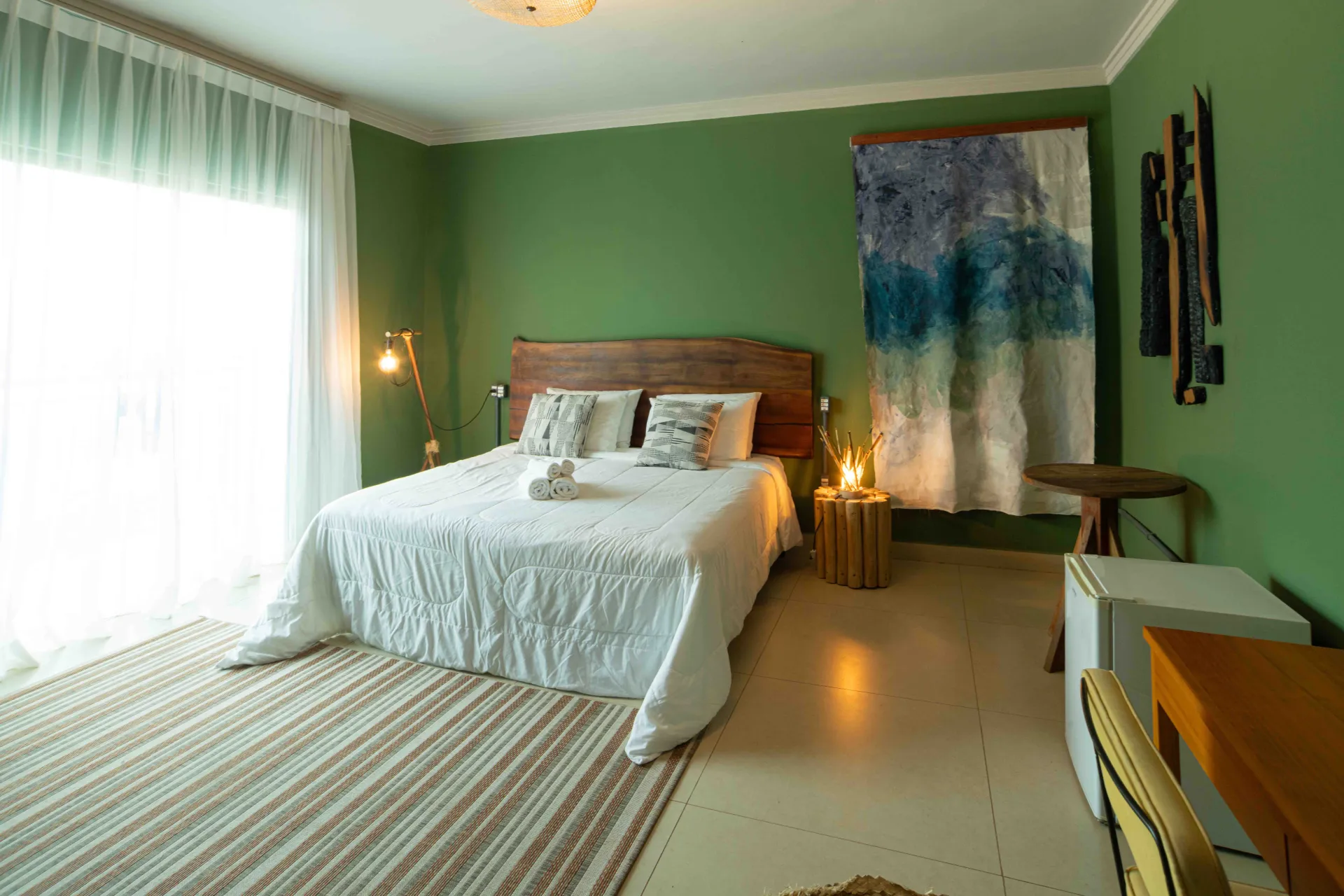 Esta suíte dispõe de ar-condicionado, chuveiro, frigobar, Smart TV 55 e secador de cabelo. A unidade oferece 1 cama de casal ou duas de solteiro.